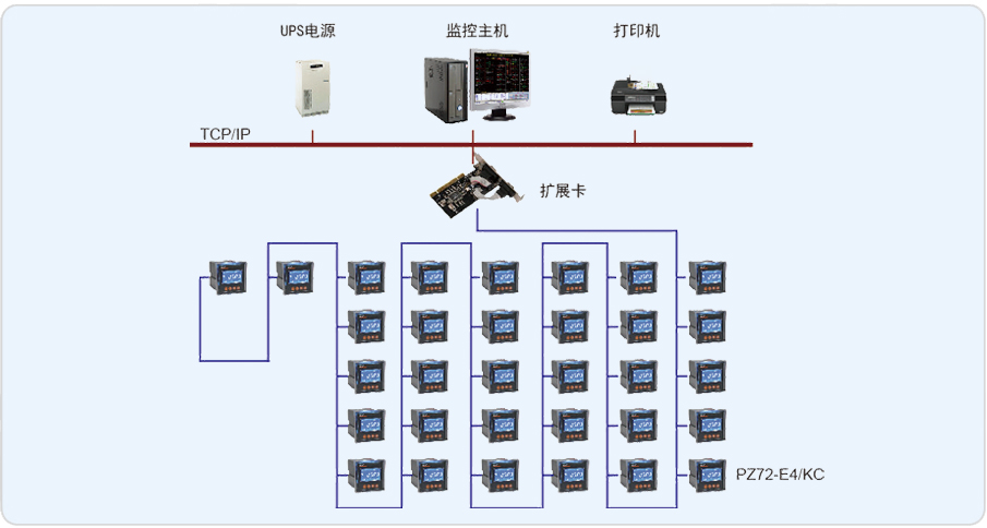 安科瑞電氣股份有限公司于2012年11月承接了常熟滌綸有限公司配電改造監(jiān)控系統(tǒng)項目。采用Acrel-3000電能管理系統(tǒng),完成了對四個廠區(qū)的電能計量功能,四個廠區(qū)共計一個高壓出線回路,32個低壓出線回路,均安裝PZ72-E4/KC可編程電測表,所有儀表均通過RS485總線連接至擴(kuò)展卡,再通過擴(kuò)展卡將數(shù)據(jù)上傳至到整個電能管理系統(tǒng)中。