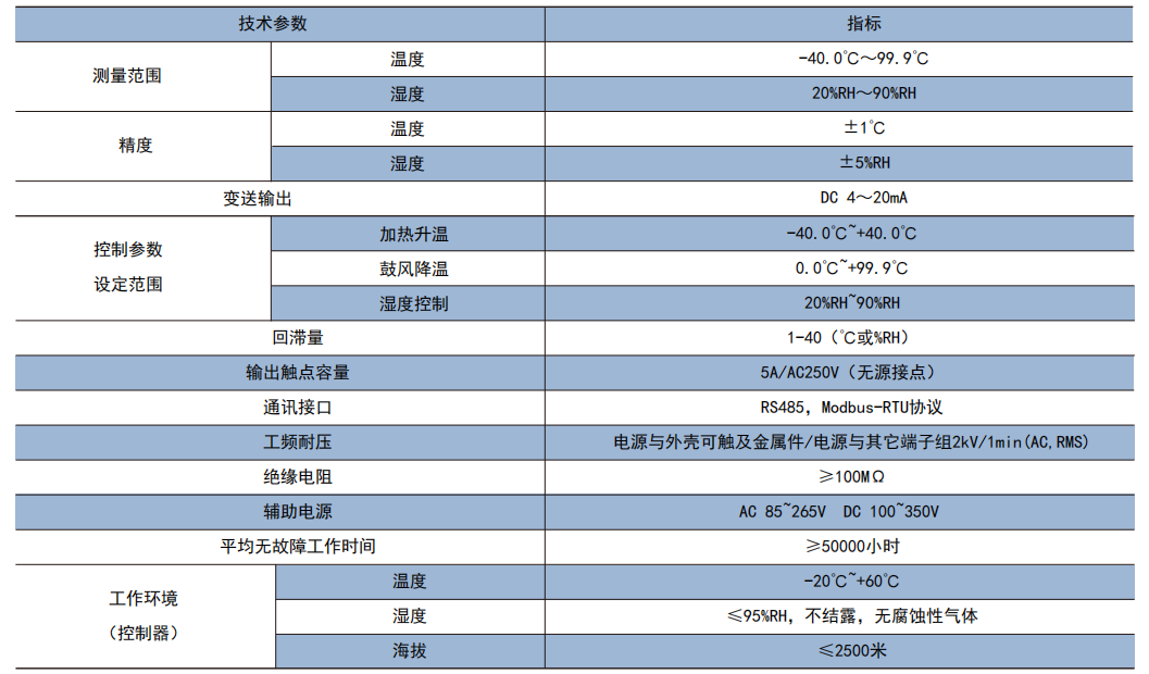 技術(shù)要求:濕度≧85%RH加熱除濕,≦80%停止;溫度≧40℃鼓風(fēng)降溫,≦5℃加熱升溫。