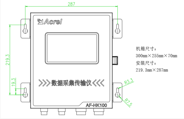 AF-HK100 污染源在線自動監控(監測)數據采集傳輸儀是應環保領域各級國控、省控 及市控污染源環境在線監控(監測)系統的需求而開發研制的產品,通過模擬通道、開關通 道、數字通道(RS232/485/LoRa)與前端各類監測儀器/儀表實現無縫連接,進行本地數據 采集、存儲、處理與展示,并通過 4G/有線等網絡將數據遠傳至監控中心。