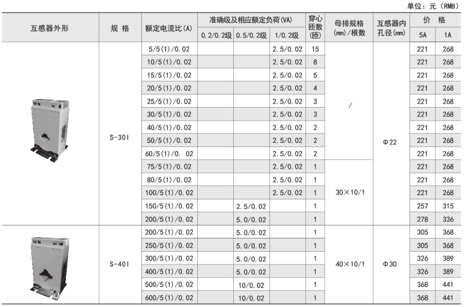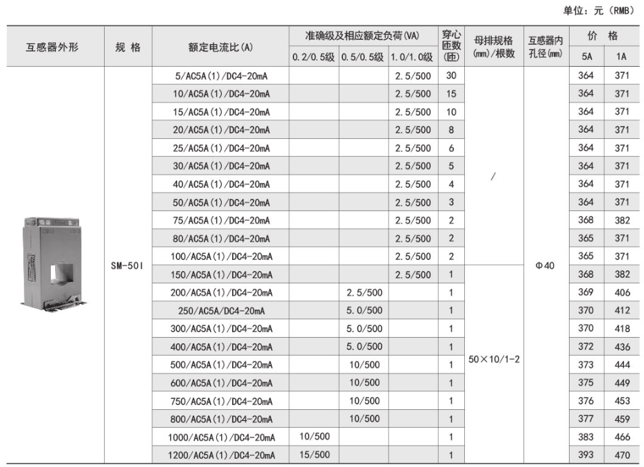 技術(shù)要求:額定電流比500A/5A/20mA;準確級0.5/0.2級;穿心匝數(shù)1匝;內(nèi)孔徑φ40mm。