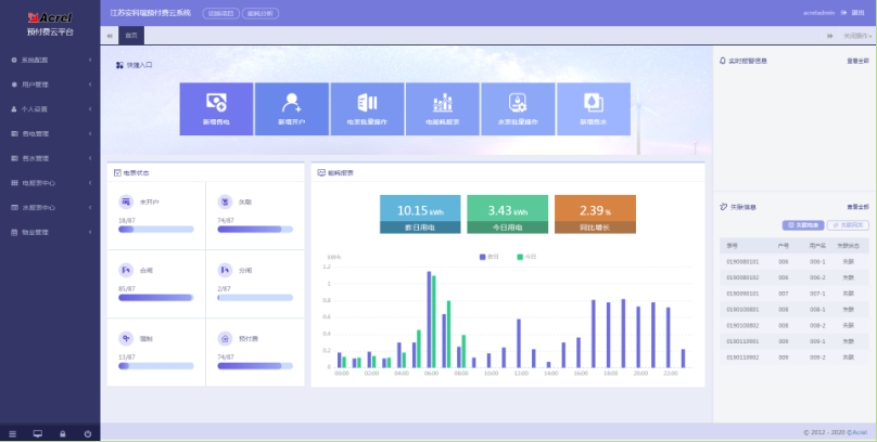 對于分布不同省、地市或同地市不同區域的連鎖商業、集團、百貨、門店、物業、院校等業務分散,要求集中管理、線上支付,低額提醒、欠費告警。但常規的本地插卡付費、本地預付費并不能完全滿足客戶管理需求,預付費云平臺應運而生。AcrelCloud-3200水電預付費云平臺無縫集成商業、物業公司、集團企業、院校等分散布置的安科瑞DDSY/ADF系列電子式預付費電能表、閥控智能水表等,提供微信、支付寶、銀聯等可選的在線支付方式,大大方便了用戶充值、圈存,提供預警和充值、退費、電能消耗等記錄查詢,方便用戶和管理方的數據統計和財務分析,提供先交費后使用的管控機制,大大降低了管理部門的收費成本。